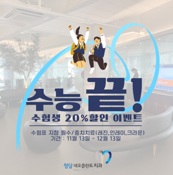 - [수능 끝! 청담네오플란트치과 수험생 특별 이벤트]
